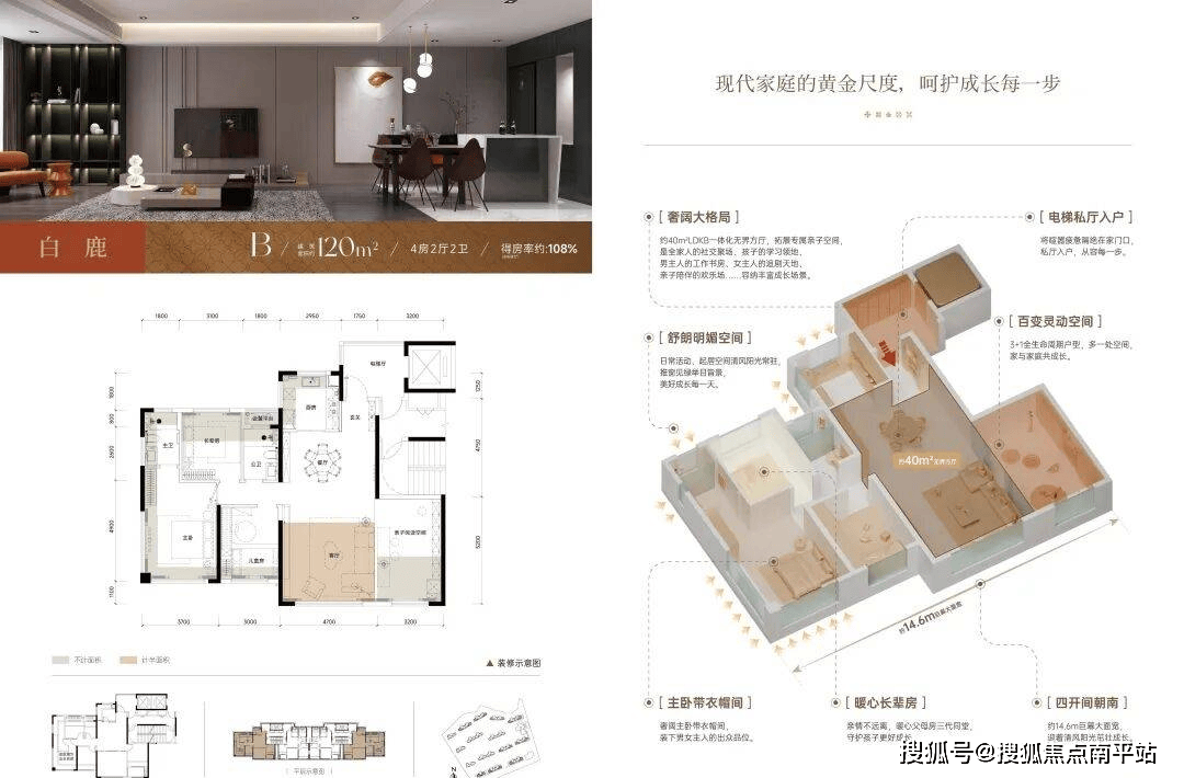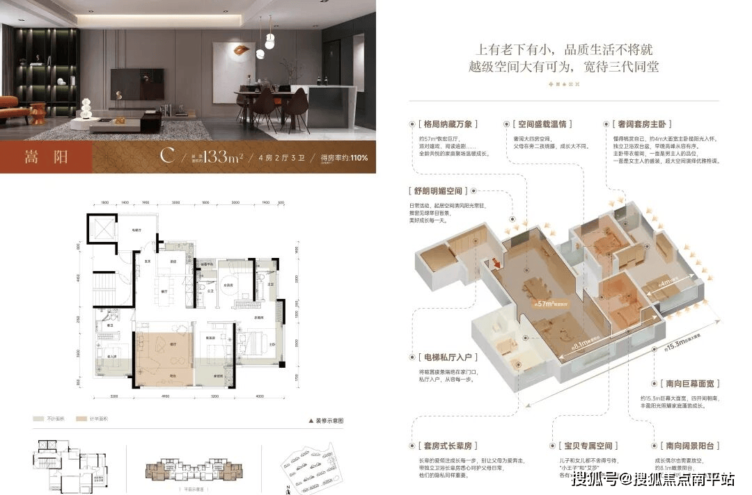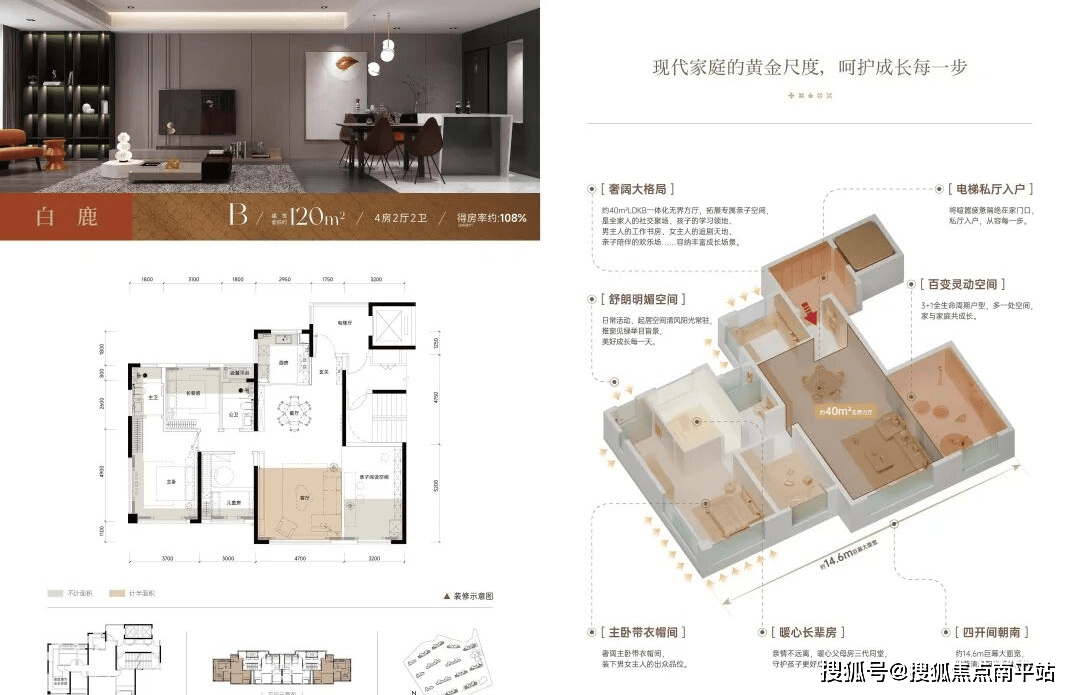 此外,得房率高达108.7%(含入户光厅),免责声明:本宣传材料所有文字、数据、图片及所标尺寸等仅为本项目扶植区域设想结果的表达和示意,